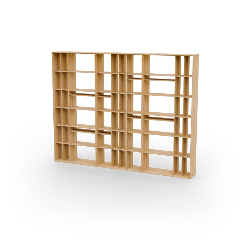 X-LINK je modulární úložný systém založený na čistých liniích a poctivých materiálech. Každý modul kombinuje masivní dub s precizně opracovanými hranami a vytváří kompozice – od jediného kusu až po celou knihovnu. Můžete jej zavěsit na stěnu nebo postavit na dřevěnou či nerezovou podnož. Každý prvek se spojuje s milimetrovou přesností díky 5osému CNC obrábění, takže systém můžete v čase rozšiřovat bez narušení čistého, architektonického vzhledu.